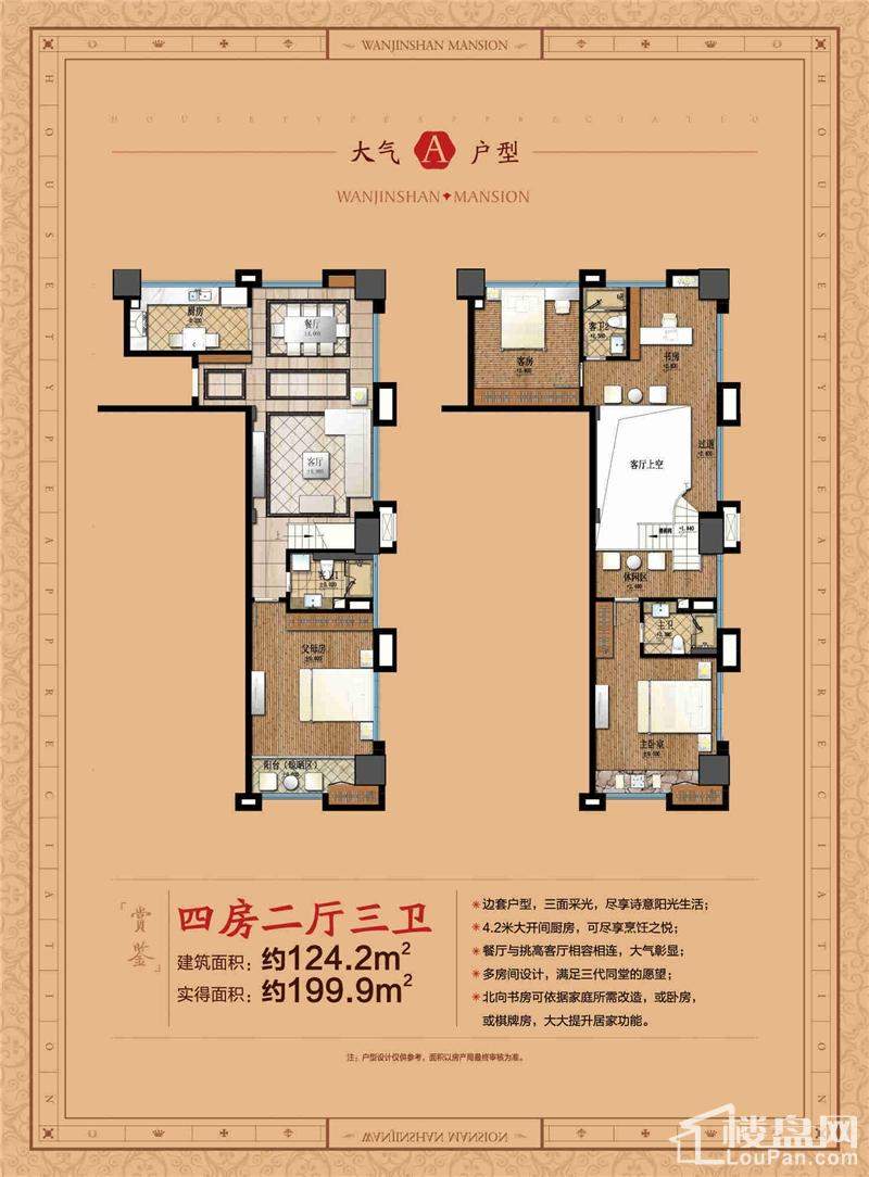 万金山国际公馆,位立于三门大湖塘新区,项目西邻装饰城,北至凤鸣路,南临74省道,东与三门客运总站无缝相连,优踞三门城东中的沿海高速,从沿海高速到宁波象山、舟山只要30余;而公交站就在家门口,交通四通八达,不管您是有车还是没车,出门去哪里都方便。项目总占地16761㎡,总建筑面积约55408㎡,由1幢18层带装修酒店式公寓、1幢9层城市型精品酒店以及沿街商业三部分组成,依地块形状规划为“U”字形布局,是三门祥弘旅游开发有限公司汇聚实力,精心为三门财富打造的城市人居标杆之作。具体规划建设指标如下:建筑类型:高层小高层,容积率:2.5,绿化率:25%,总户数:225户户,车位信息:地面有70个临时停车位,地下室配备有160个停车位,基本达到1:1配比个,产权年限:商铺40年,住宅40年,物业公司:三门祥弘物业管理有限公司,物业费:1.5元/平米·月,开盘时间:2015年9月3日开盘。