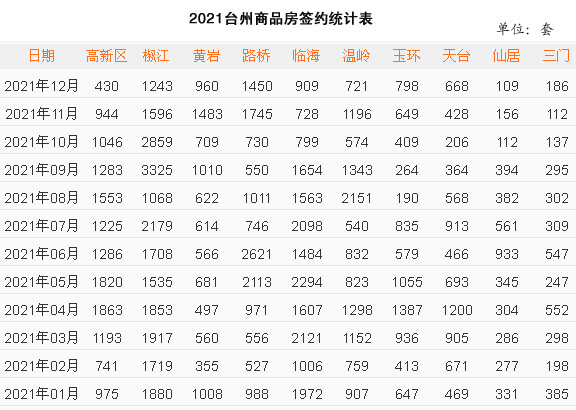 数据来源:台州房管政务网 制表:首辅房产