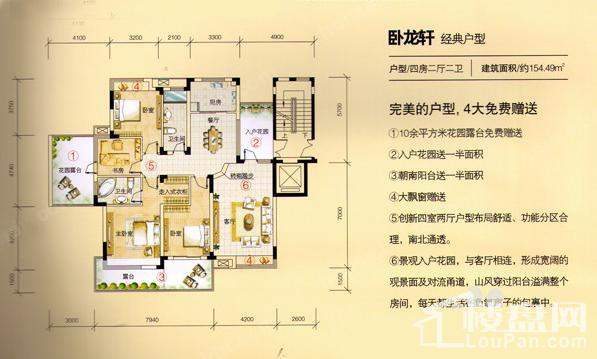 户型结构:4室2厅2卫 户型面积:154.49㎡(建面) ㎡