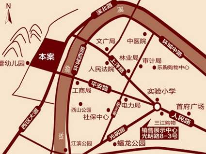 西区大道为西区的交通动脉,南接三门出入门户光明路,可快捷通达甬台温高速及高铁站;北接溪北路、城市北部环线,快速便捷。西区大道为城市新的黄金大道,与环城西路隔江相望,城北桥、平安桥等贯通